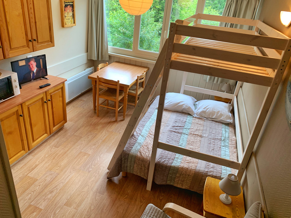 Studio pouvant accueillir jusqu'à 3 personnes maximum, avec des prestations hôtelières s'adaptant donc pour des nuitées ou week-end, il est entièrement rénové et équipée, il comporte une pièce de vie, avec un lit double et un lit simple en mezzanine.
